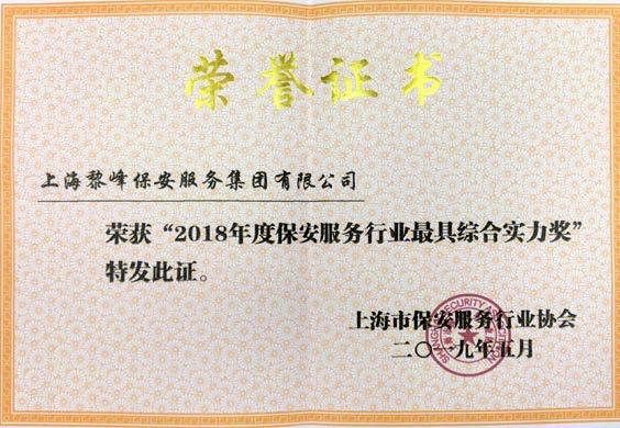 2018年10月 榮獲上海市公安局頒發(fā)的“保安服務行業綜合實力企業獎”